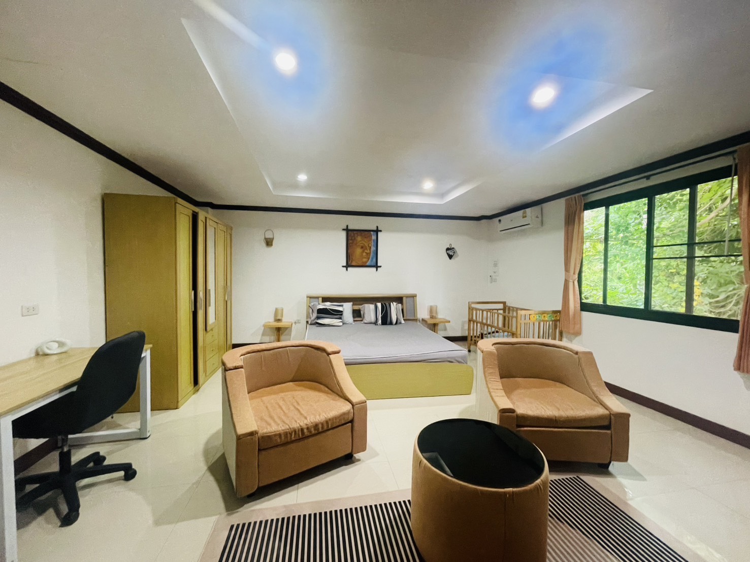 This apartment is thoughtfully designed for both relaxation and comfortable living. It offers a variety of room options, including single units and connected duplex-style units — perfect for family stays.